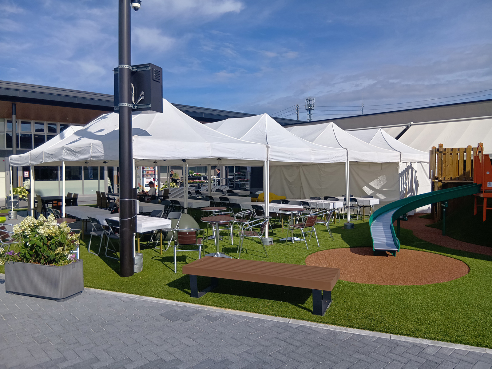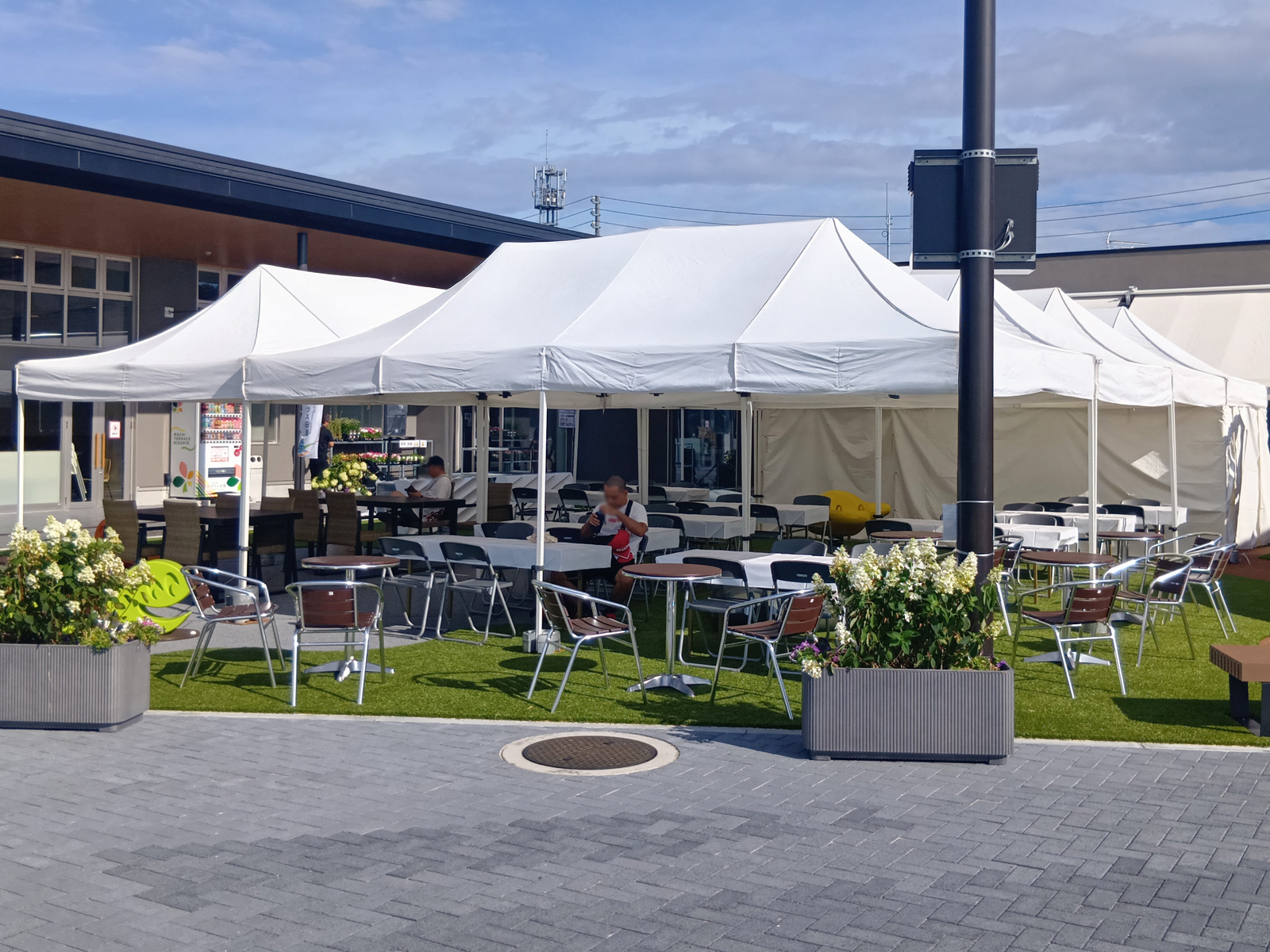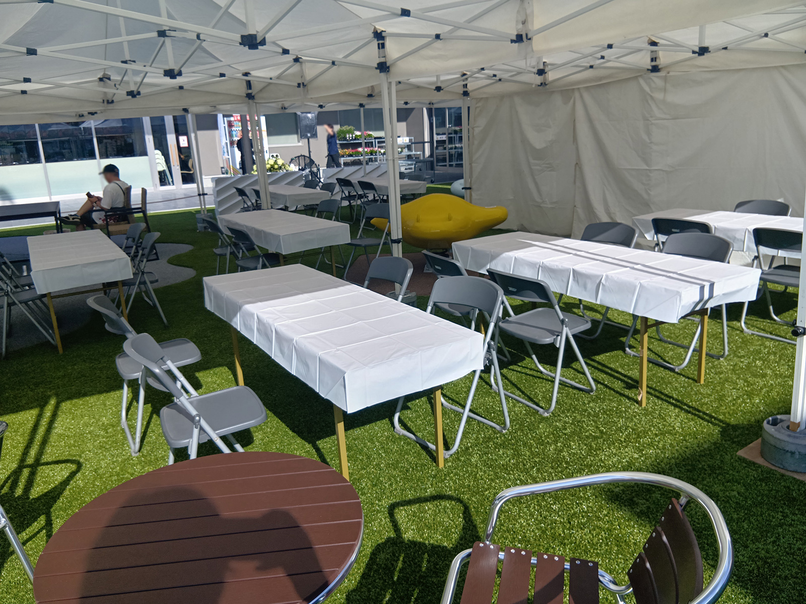 休憩所なら、日陰を作って涼める場所に作りましょう!飲食屋台の近くにオススメです。
