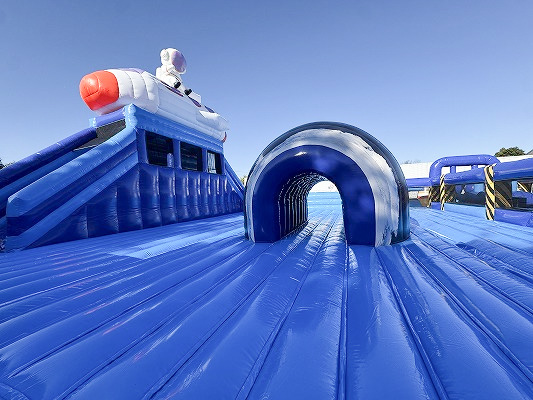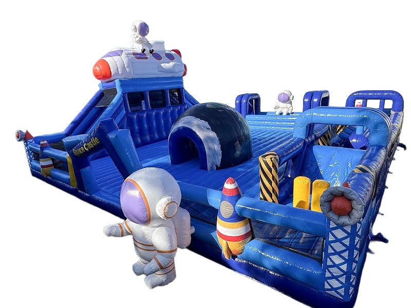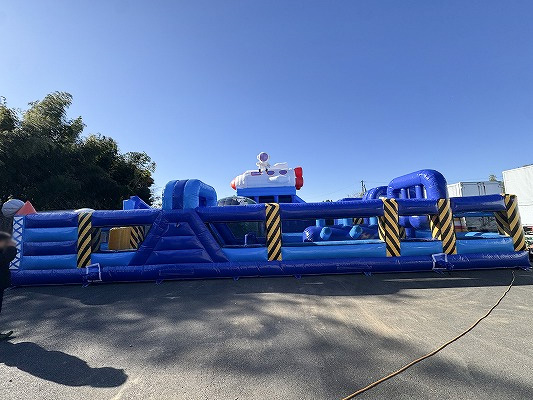 ビッグスペースプレイランドは、宇宙をテーマにした迫力満点のふわふわ遊具です。巨大な宇宙船や宇宙飛行士のデザインは遠くからでも強いアイキャッチとなり、会場に設置するだけで自然と人を引き寄せます。