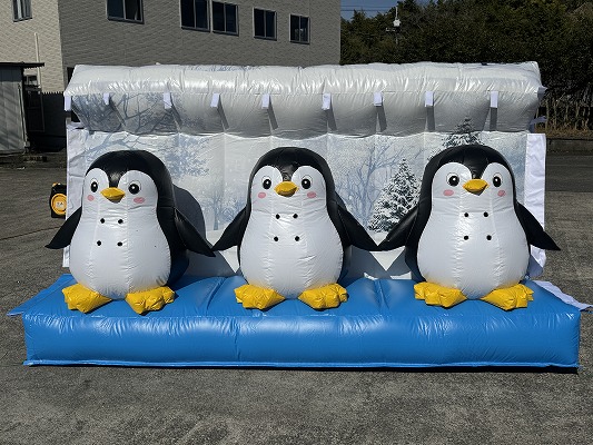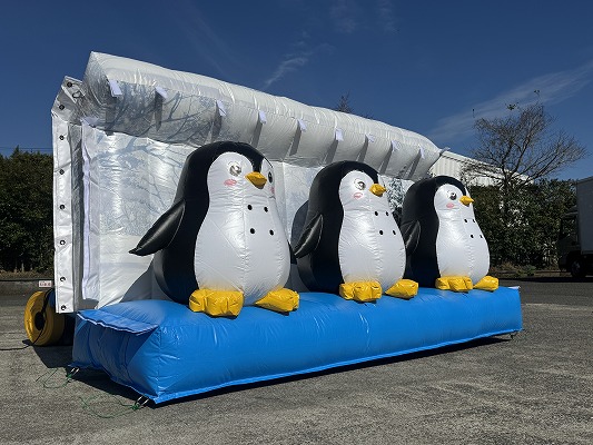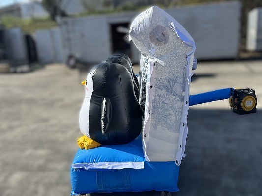 愛らしいペンギンたちが、ミストと風のダブル効果でひんやり空間を演出する「ペンギンミストウォール」。空気でふくらむ設計のため設営も簡単で、手軽に熱中症対策が可能です。雪山をイメージしたデザインと3匹のペンギンが、見た目にも涼しさと癒やしをプラス。イベント会場の休憩スペースとしてはもちろん、フォトスポットとしても注目を集め、集客効果にもつながります。夏の屋外イベントを快適かつ楽しく演出するおすすめアイテムです。