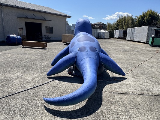 全長5mの圧倒的スケールで来場者の視線を一瞬で集める「リアル恐竜ミストバルーン(モササウルス)」。リアルな造形の口元から涼しいミストが噴き出し、夏のイベントに欠かせない熱中症対策とワクワク感を同時に演出します。エントランスや広場に設置すれば、自然と人が集まるアイキャッチ&フォトスポットに。軽量で設営も簡単、女性1人でも扱いやすいのも魅力です。集客力と快適性を両立する、夏イベントの主役アイテムです。