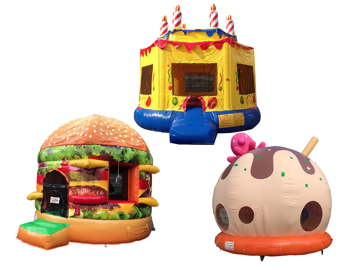 美味しそう、アツそう、甘そう!様々なフードを模したエアー式トランポリンの3セットです。その高いアイキャッチ効果を利用して子供たちが遊べる場所を提供できます。食べ物をイメージしたイベントにもおすすめです!