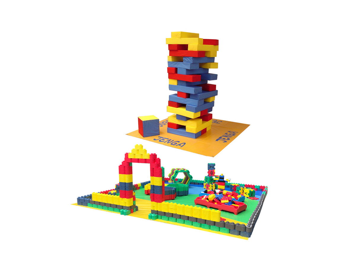 カラフルで色とりどりのブロックを組み合わせて遊ぶ、ブロック遊具セットです!