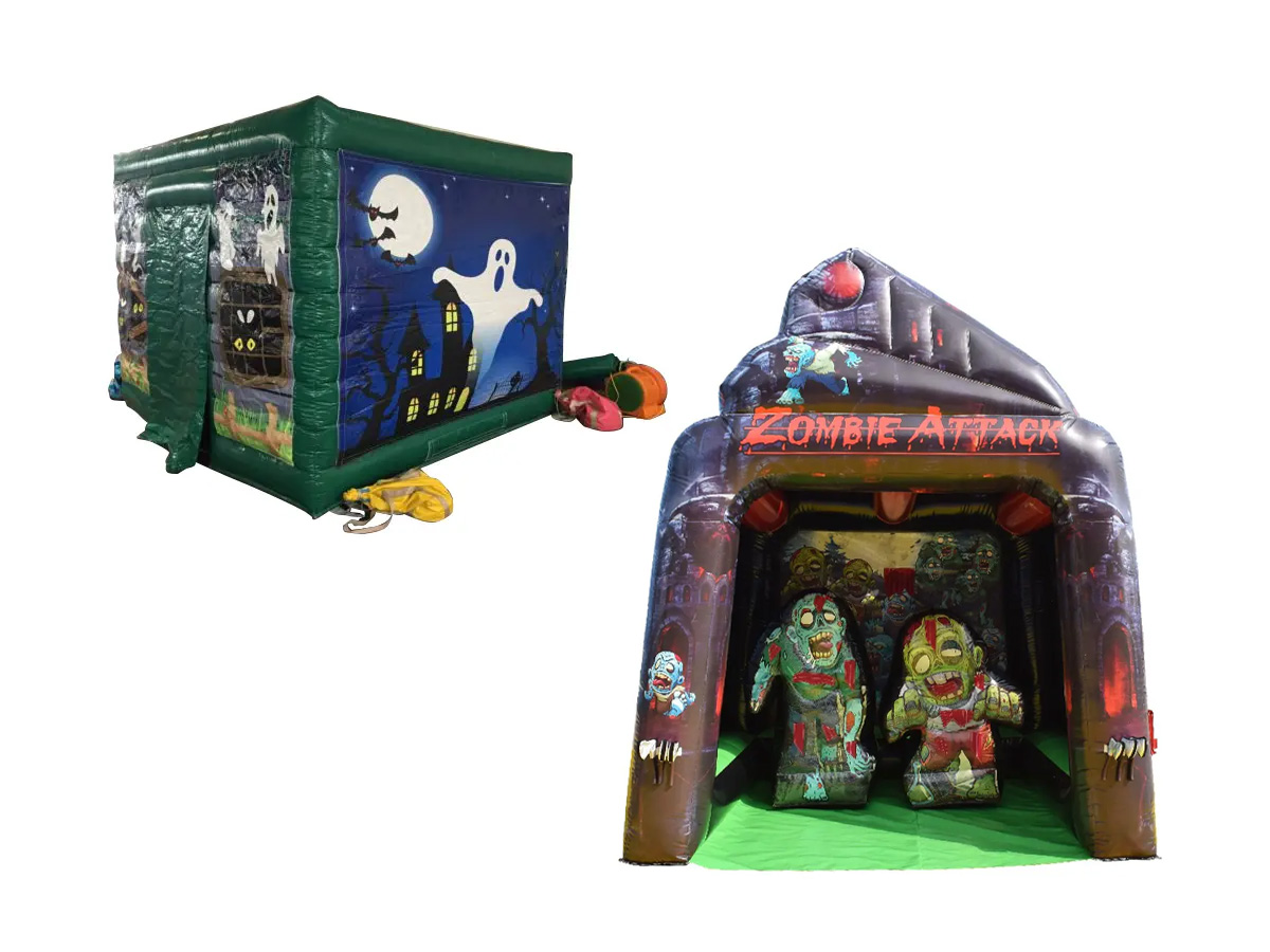 ゾンビや幽霊といった、おばけをやっつけるコンセプトのゲームセットです。斧を投げたり、あるいはレーザーガンでやっつけます!夏場の肝試しや、ハロウィンイベントの賑やかしにいかがでしょうか。