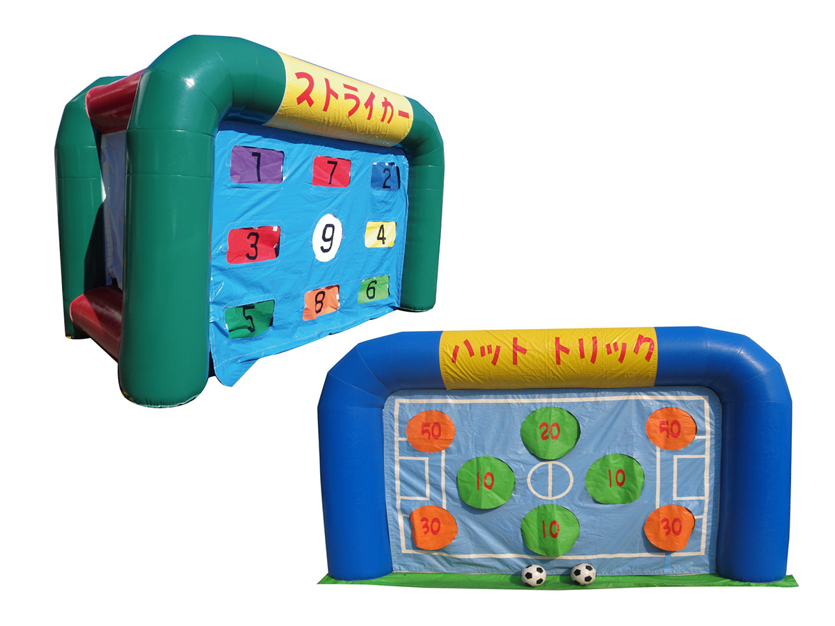 空気で膨らむサッカーゴールの2セットです。設営簡単。迫力満点です!景品をかけてサッカーボールをシュートしてポイントをとって遊べます!