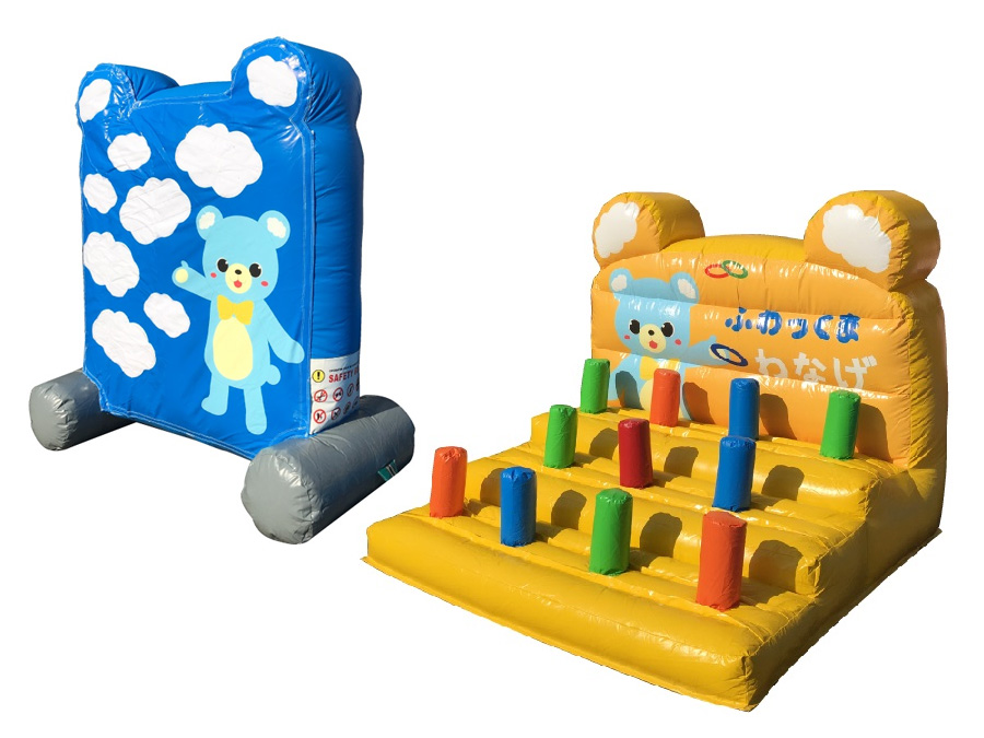 的に向かってボールを投げる、輪っかを投げる。そんなシンプルなゲームです。エアーで膨らませばアイキャッチ効果は抜群です。統一性があつつ、異なるゲームをお楽しみいただけます。