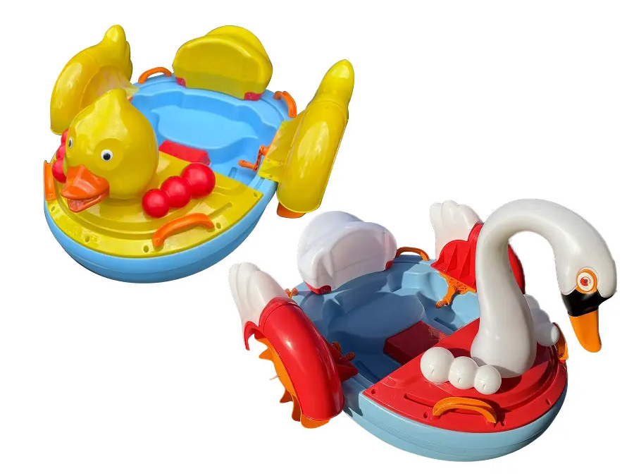 かわいらしいひよこと白鳥のパワーパドラーセットです。左右のハンドル(パドル)を手で回して移動できます。デザインは異なりますが、操作方法はどちらも同じです!プール遊びのアクセントにいかがでしょうか?