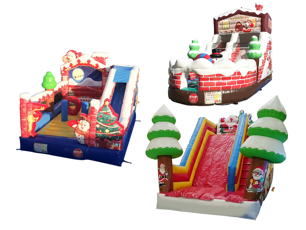 クリスマスの雰囲気をたっぷり楽しめる、特別なエアー遊具を集めました。サンタさんのように滑り台をすべるワクワク感が味わえる、大人気の滑り台型エアー遊具をはじめ、赤と緑、そして雪を思わせる白を基調にした華やかなデザインが会場を彩ります。屋内外どちらのイベントにもぴったりで、お子さまから大人まで笑顔になれる空間を演出します。さらに、プレイスペースに「プレゼントコーナー」や「フォトスポット」を設ければ、クリスマス気分がいっそう盛り上がります!冬のイベントを明るく彩る、心温まるエアー遊具をぜひご活用ください。