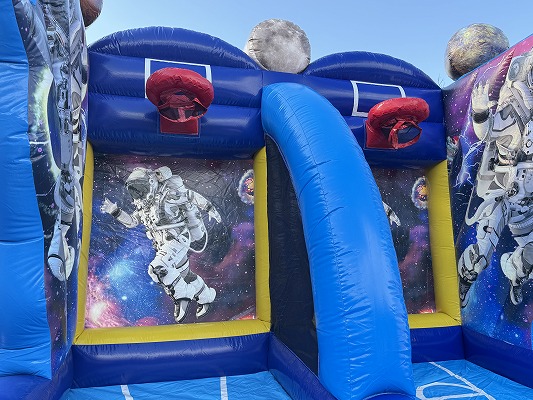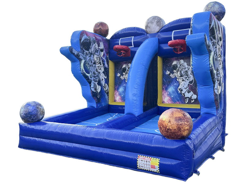宇宙をイメージしたデザインが目を引くバスケットシュート遊具です。2つのリングを備えた2レーン仕様で、同時に複数人がプレイできるため回転率が高く、待ち時間を抑えながら多くの来場者に楽しんでいただけます。大人から子どもまで直感的に遊べる内容で、ファミリーイベントや商業施設の集客施策、地域のお祭りにも最適。「〇〇円以上のレシートで挑戦」「成功で景品プレゼント」など販促企画とも相性抜群です。設営もスピーディーなため、スポーツイベントやハーフタイム企画などにも柔軟に対応できます!