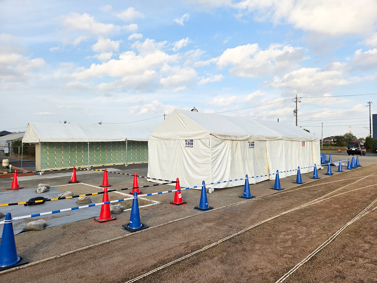 愛知県稲沢市で稲沢シティーマラソンの会場を設営